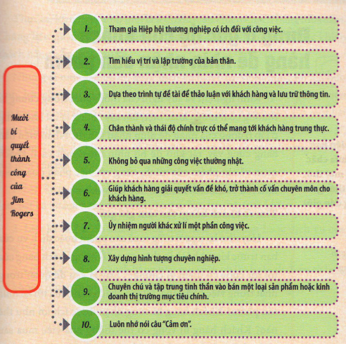 Giành được sự tín nhiệm của khách hàng là điều mà jim Rogers coi trọng nhất, cũng là yếu tố chủ đạo giúp ông luôn thành công. Bởi vậy, trong 10 bí quyết thành công của ông, 4 bí quyết cuối cùng đều là cách tiếp xúc với khách hàng, giành được sự tín nhiệm cao của khách hàng. Jim Rogers có thể giành được sự tín nhiệm cao của khách hàng, mấu chốt đến từ việc bảo hiểm mà ông bán ra, ông luôn tận tâm với khách hàng.