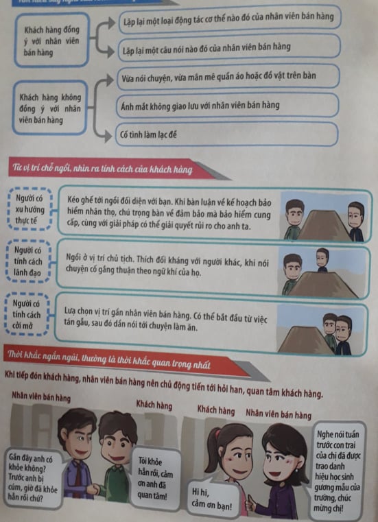 Nhân viên bán hàng cần quan sát ngôn ngữ cơ thể của khách hàng để phán đoán xem khách hàng có hứng thú với ý kiến của bạn không. Ví dụ, trong quá trình đàm phán, khách hàng liên tục khoanh tay, để tay trước ngực, điều này thông thường biểu thị anh ta vẫn chưa hoàn toàn mở lòng với bạn.