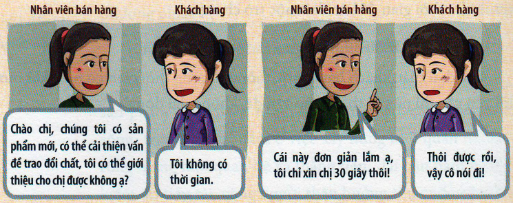 Thứ hai là cách dẫn nhập chủ đề: Phải tận dụng 30 giây đầu tiên, tạo ra điểm vào đề trực tiếp, thú vị, có liên quan đến sản phẩm để khơi dậy hứng thú của khách hàng lạ. Chỉ cần đối phương tiếp nhận 30 giây đầu là có thể tiếp nhận 3 phút, thậm chí 10 phút, đừng cứ mở lời nói ” Xin cho tôi 3 phút”, 3 phút đối với người lạ mặt thiếu tính nhẫn nại cũng là quá dài.