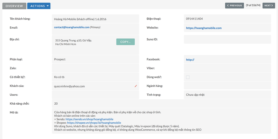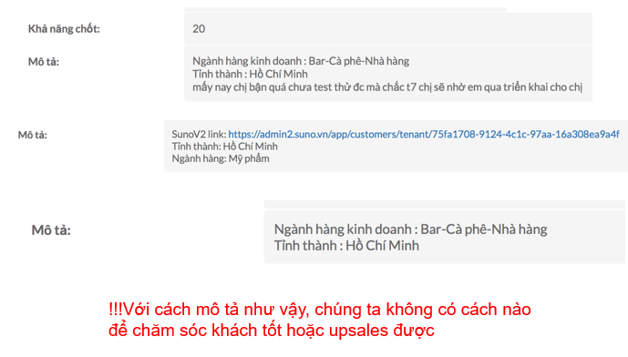 –Mục “Mô tả”: dùng để mô tả thông tin về khách hàng, quy mô cửa hàng, mô hình kinh doanh