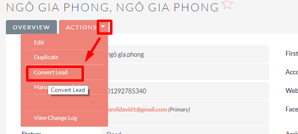 –LEAD được chuyển đổi thành ACCOUNT khi đã liên hệ được và có được thông tin CHÍNH XÁC về lead (tên, email, số điện thoại …)