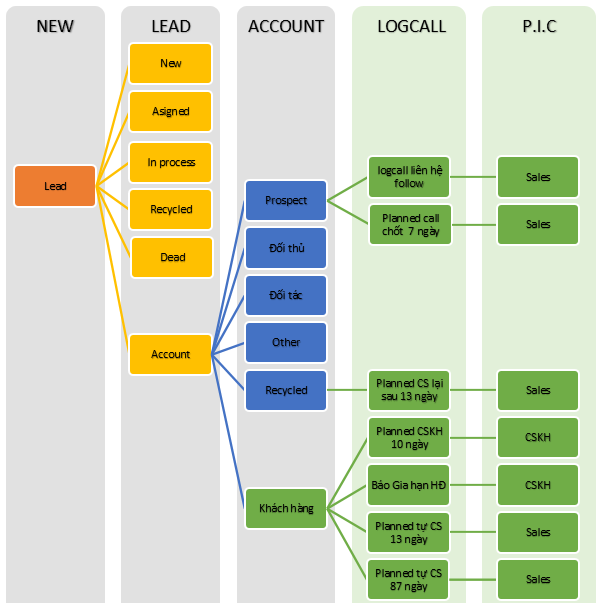 + Sau khi NVKD tiếp nhận, chăm sóc Lead: